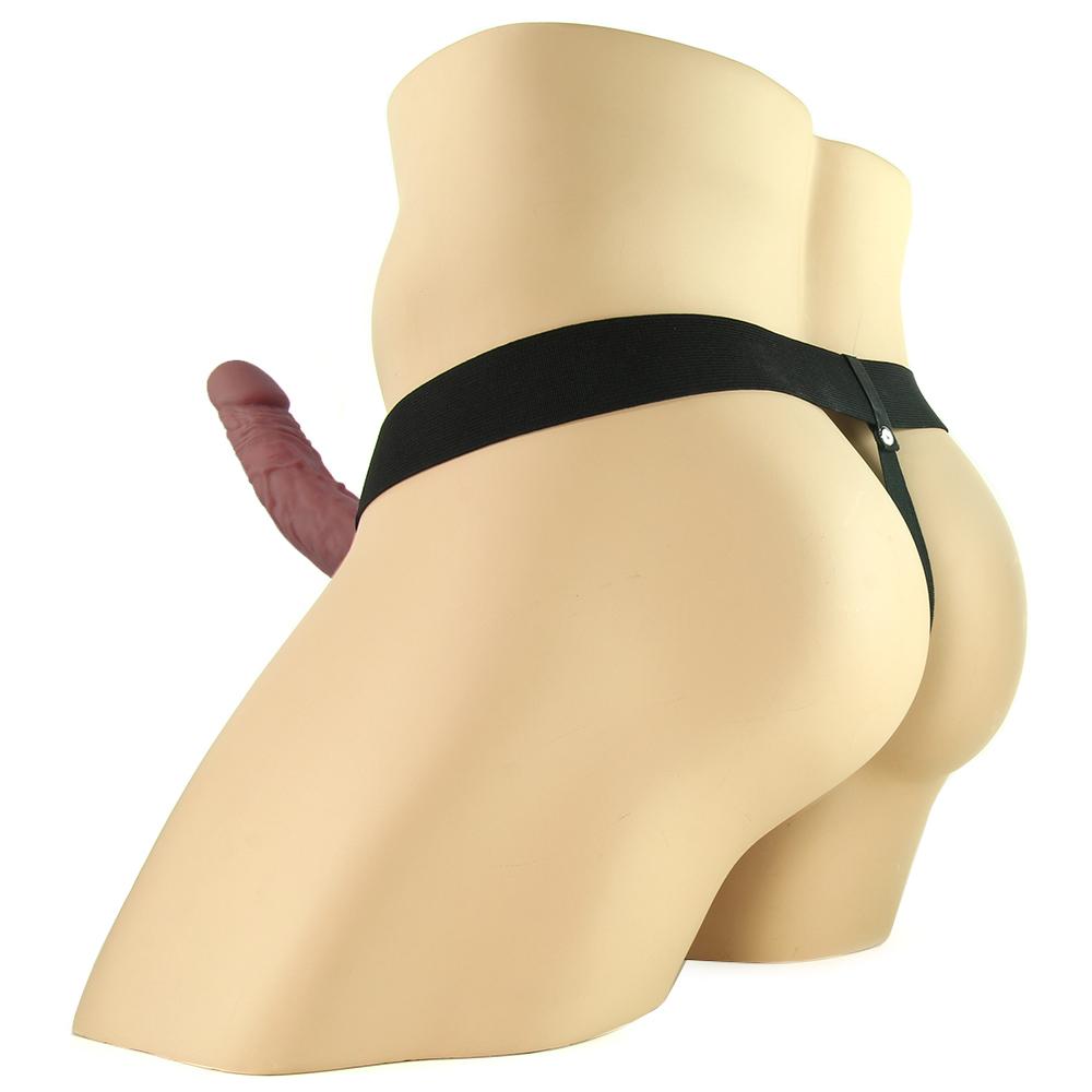 Seriously user friendly, the 9" Hollow features a super-simple design that's quick and easy to get into or out of. A soft harness with stretchy elastic waistband and a g-string style back strap slips easily over the hips, steadying a classic realistic dildo into place.