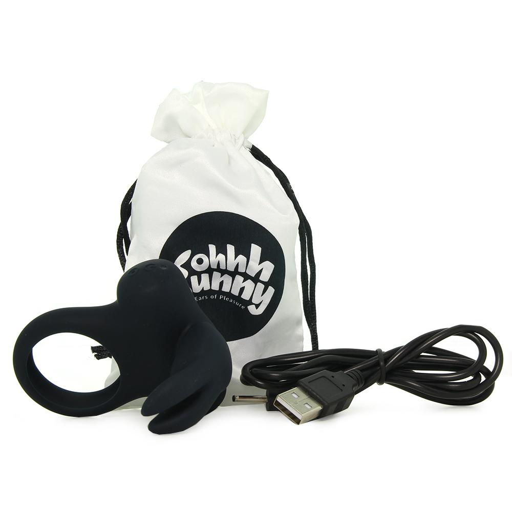 Frisky Bunny Vibrating Cock Ring in Black Pearl
