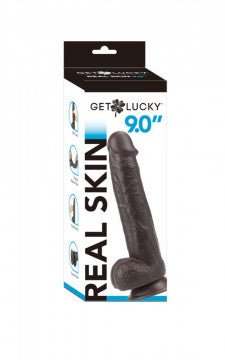 Get Lucky 9 Inch Real Skin Dildo - Dark Brown