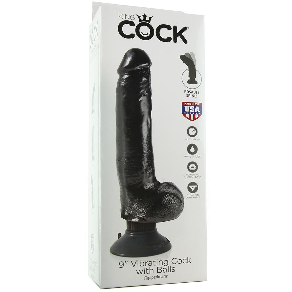 King Cock 9 Inch Vibrating Dildo with Balls in Black