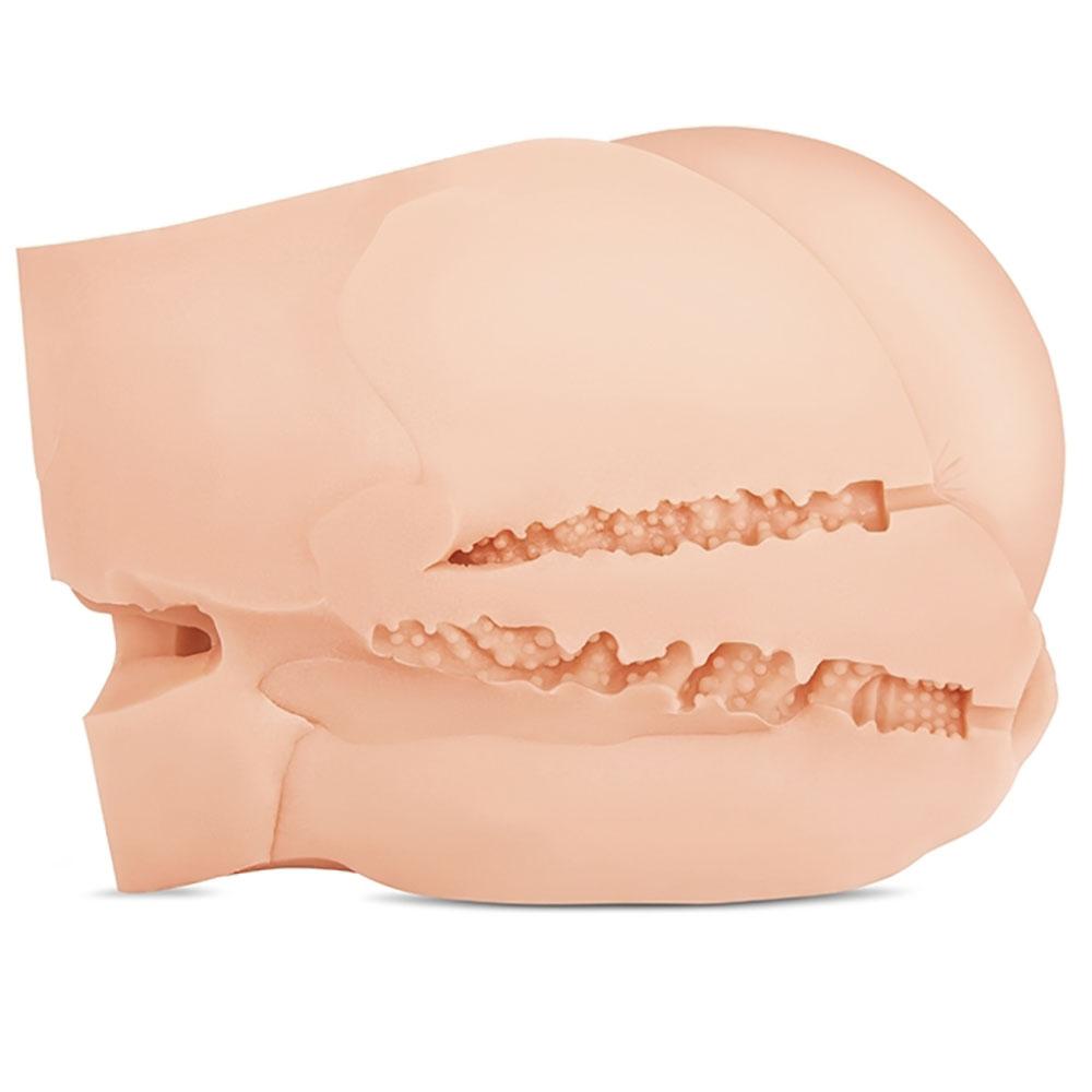Shaped into a rounded, spank-able butt and ultra lifelike, pink-lipped pussy all spread out for easy access, this premium LuvDollz masturbator features two separate, snug, orgasmically textured penetrable channels engineered to feel as close to real as (un)humanly possible. You'll be able to add in vibration anytime you like with an included double bullet vibe with power pack and an optional remote, just pop them into slots around back.