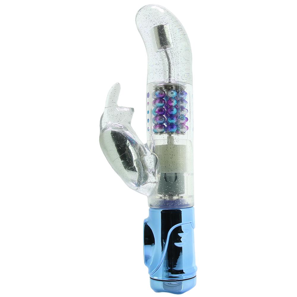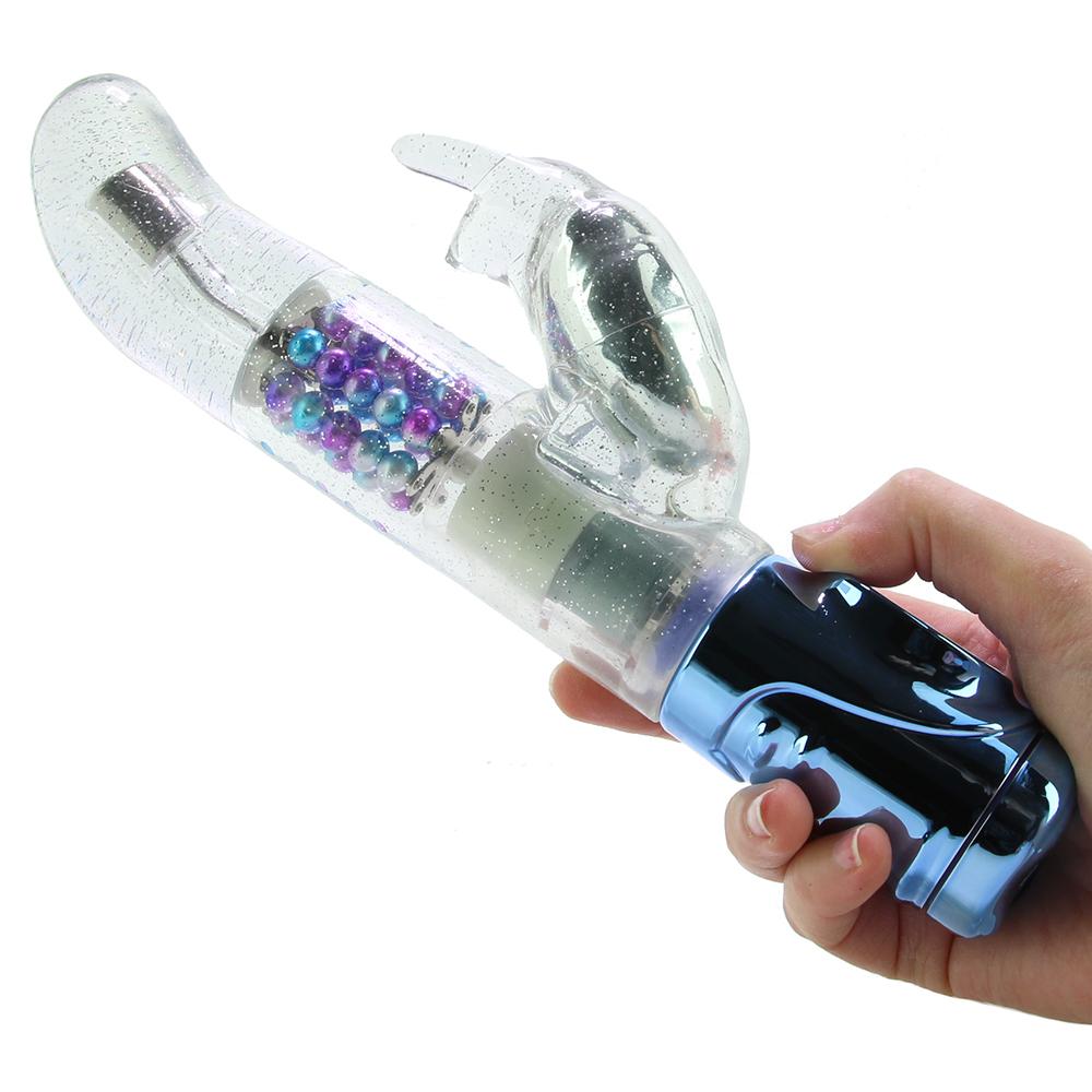 Set dozens of dancing purple and blue beads rotating along with the shaft with the touch of a button - you'll be able to change rotation direction at any time, plus speed up or slow down the spin. Meanwhile, the classic bunny reaching up from below pulses and throbs away in ten possible rhythms. Separate buttons on a simple interface activate and vary the tickler and shaft.