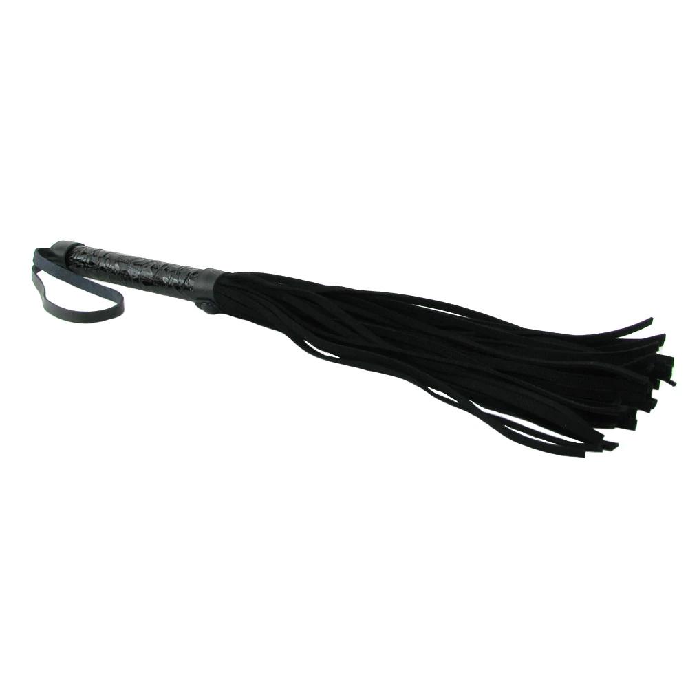A stylish, ultra functional take on a classic bondage playtime staple, the Sinful Whip combines a sturdy, patterned vinyl handle with long, soft leather tails that tickle or sting, depending on how you choose to wield it.