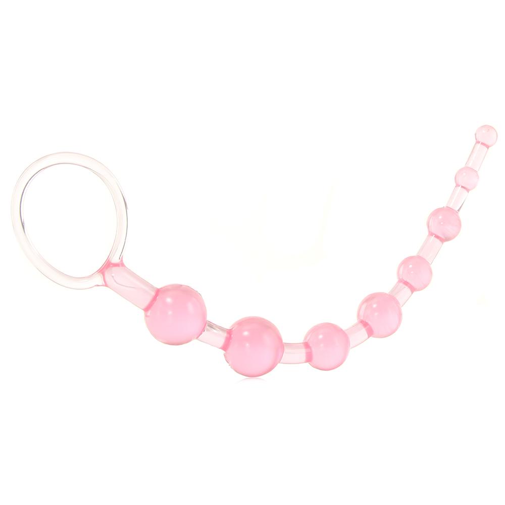 Comfortably introducing anal penetration, the Orgasm Beads feature a tiny starter bead with seven more following. The beads increase slowly in size toward a looped handle- there's lots of spacing between, allowing for slow graduation to the larger beads.