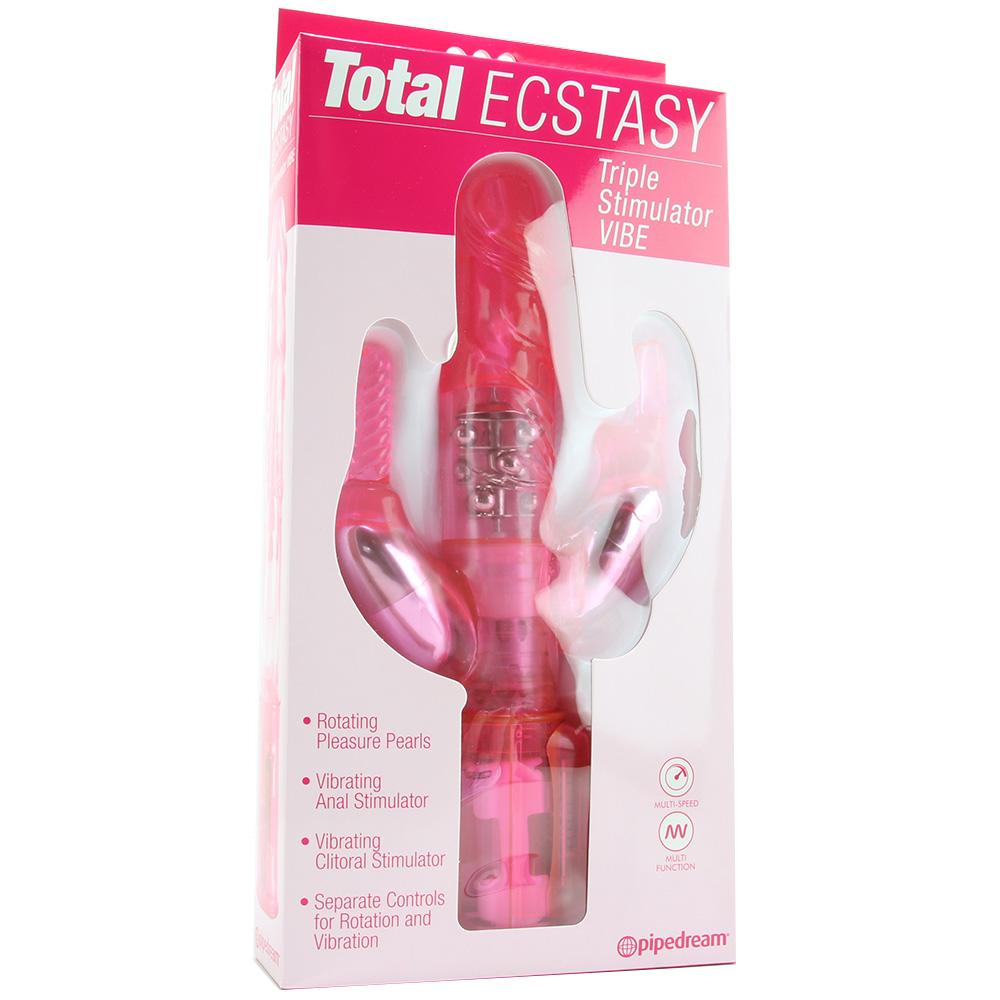 Focusing tons of love on a practically orgasm-guaranteed trio of sweet spots, the Total Ecstasy Triple Stimulator adds super-sexy butt stimulation and a classic clit-adoring bunny to a shaft packed with sexy rotating beads.
