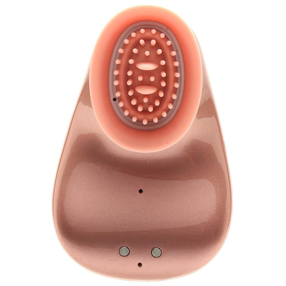 Two buttons on the rounded back of the rose gold Twitch independently activate and vary the pleasure options. Hold down the circle button for a few seconds to activate four modes of suction, and the squiggle button to do the same for ten modes of vibration.