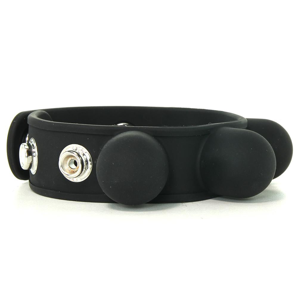 Looping under the balls and securing with rugged snaps, the Stretcher gently yet firmly tugs the scrotum away from the body, an effect that can help prolong pleasure and greatly intensify orgasm when the time finally comes.